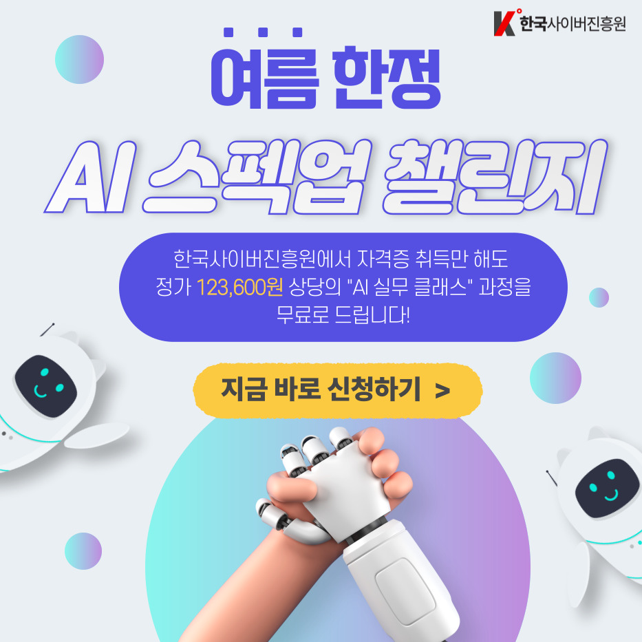 자격증 취득자에 한해 정가 123,600원 상당의 'AI 실무 클래스'를 전액 무료로 제공하는