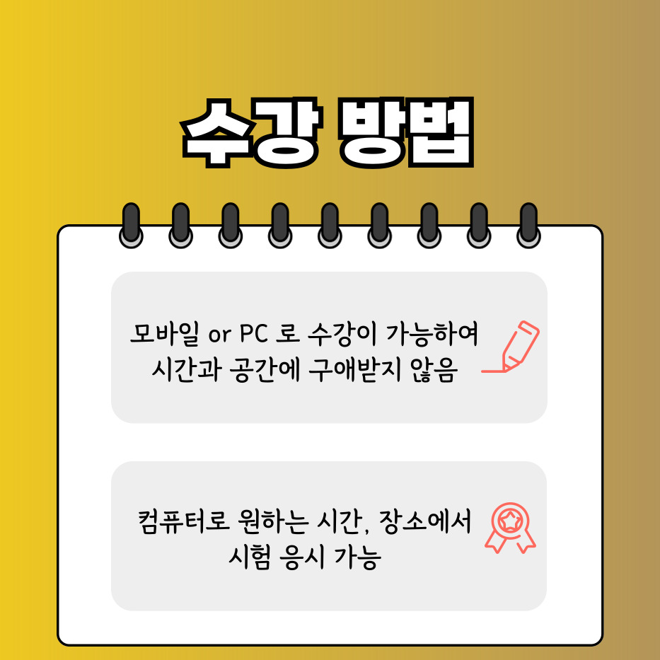 자격증 취득을 결심하고 여러 교육기관을 알아보았습니다. 가장 중요하게 생각한 것은 '신뢰성'이었습니다. 민간자격증은 발급 기관이 매우 다양하기에, 반드시 민간자격정보서비스(pqi.or.kr)를 통해 정식으로 등록된 기관인지 확인하는 절차를 거쳤습니다. 대부분의 과정이 온라인으로 진행되어 시간과 장소에 구애받지 않고 학습할 수 있다는 점이 큰 장점이었습니다.